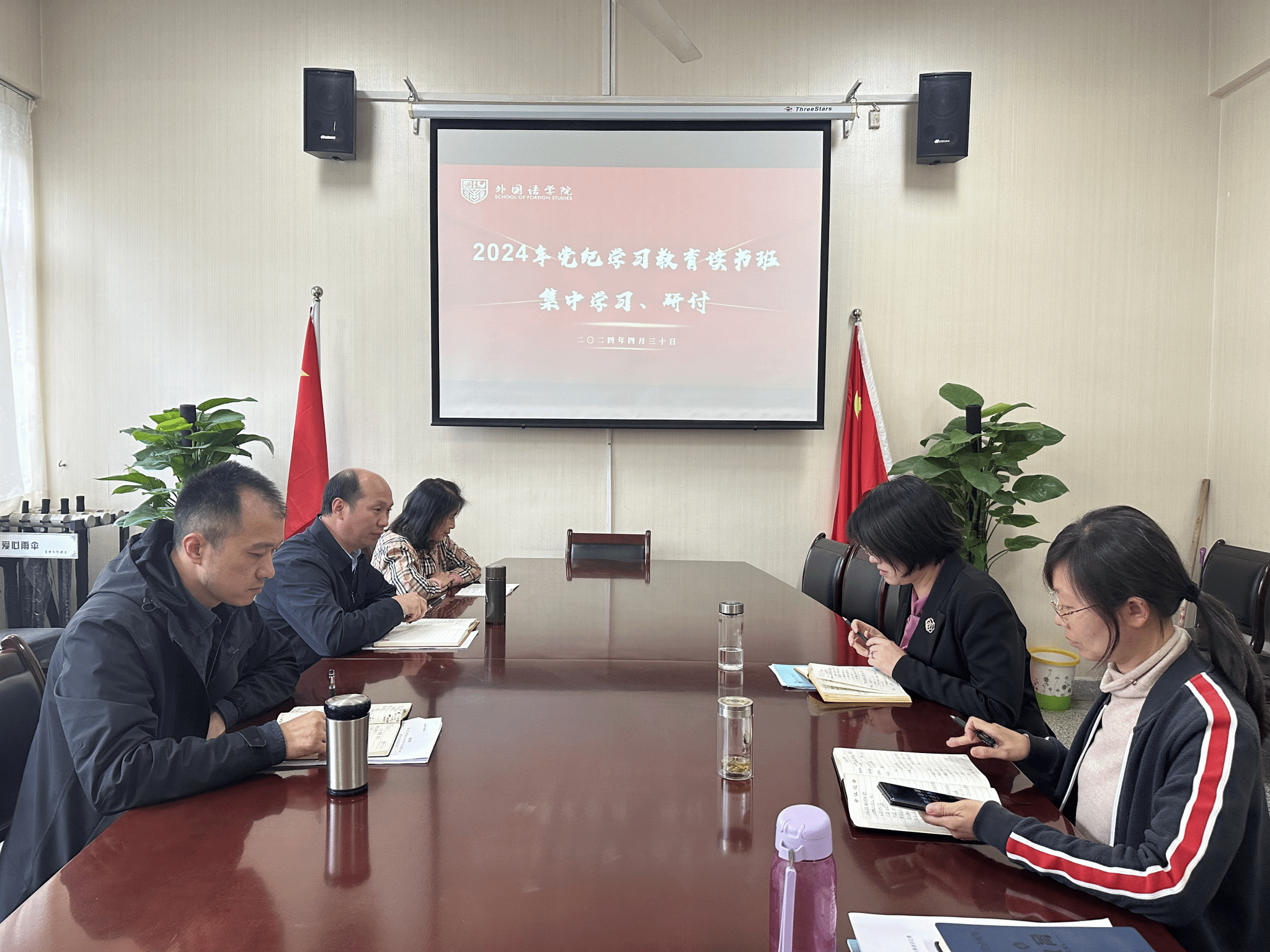 4月29日,外国语学院党总支举办党纪学习教育读书班,党总支书记王一传达中共今年会jinnianhuicom委员会印发《关于在全校开展党纪学习教育的实施方案》的通知精神及安排部署,解读《外国语学院关于开展党纪学习教育的实施方案》,要求全体党员要准确把握这次党纪学习教育的目标要求,全院开展“纪律五项”学习教育活动,压实党组织的领导责任,加强宣传引导,力戒形式主义,以良好作风保证党纪学习教育走深走实。本次读书班采取集中学习、个人自学、...