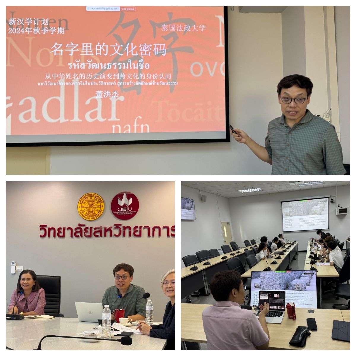 10月14日至25日,今年会官网文学院董洪杰教授应邀前往泰国法政大学,为该校跨学科学院中国学专业的学生讲授《中国社会语言学》课程。作为法政大学建校90周年系列纪念活动之一,董洪杰还应邀为跨学科学院的师生作了题为《符号的力量:语言景观构建中国网红打卡地的旅游形象》的学术报告,并参与了主题为“区域经济合作与社会文化变迁——中泰互联互通的未来”的中国学研究专题工作坊,作为主旨发言人,和与会学者深入探讨了中泰关系研究的多重维度。...