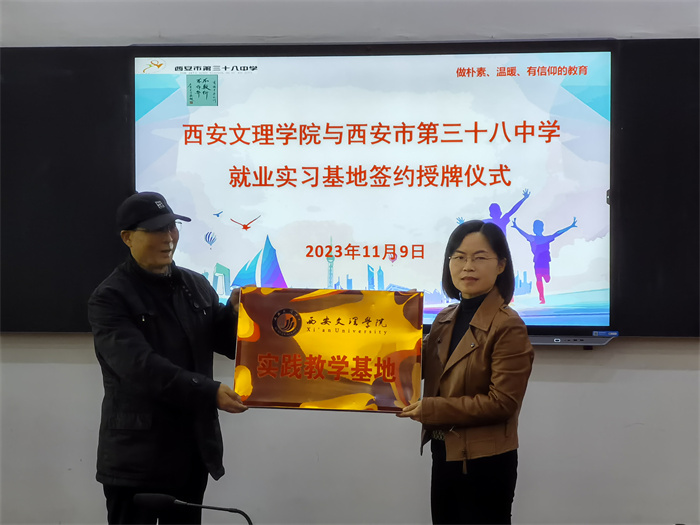 11月9日上午,化学工程学院教学副院长宋瑞娟、学生工作办公室王刚和教育实习负责老师唐永强一行赴西安市第三十八中学参加实践教学基地签约授牌仪式。第三十八中学党总支书记、校长马宏图、高中部教务主任习党伟、德育...