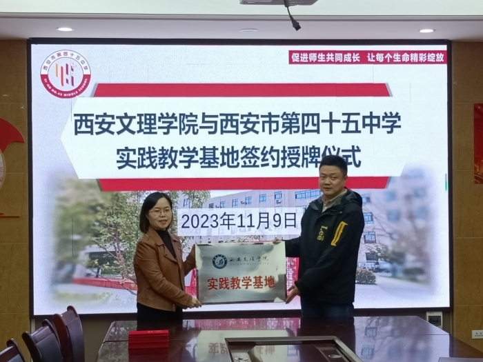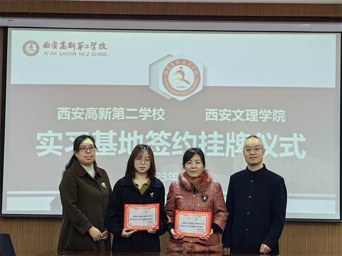11月17日上午,音乐学院与西安市高新第二学校举行教育实习基地签约授牌仪式,音乐学院副院长郭瑞玺及教育实习负责老师崔丹副教授参加了仪式。西安高新第二学校副校长刘建虎、副校长史美霞、总支副书记王增明、艺术教...