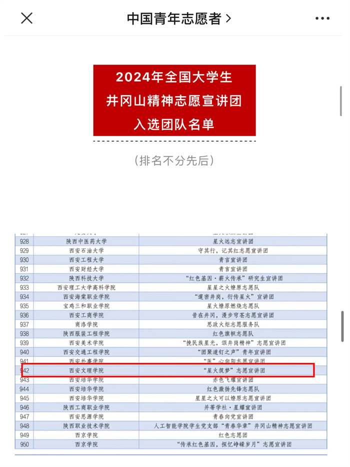 为深入学习宣传贯彻习近平新时代中国特色社会主义思想和党的二十大精神,落实“强国复兴有我”群众性主题宣传教育活动相关要求。近日,相关部门接连公布了2024年全国大学生延安精神志愿宣讲团、2024年全国大学生井冈...