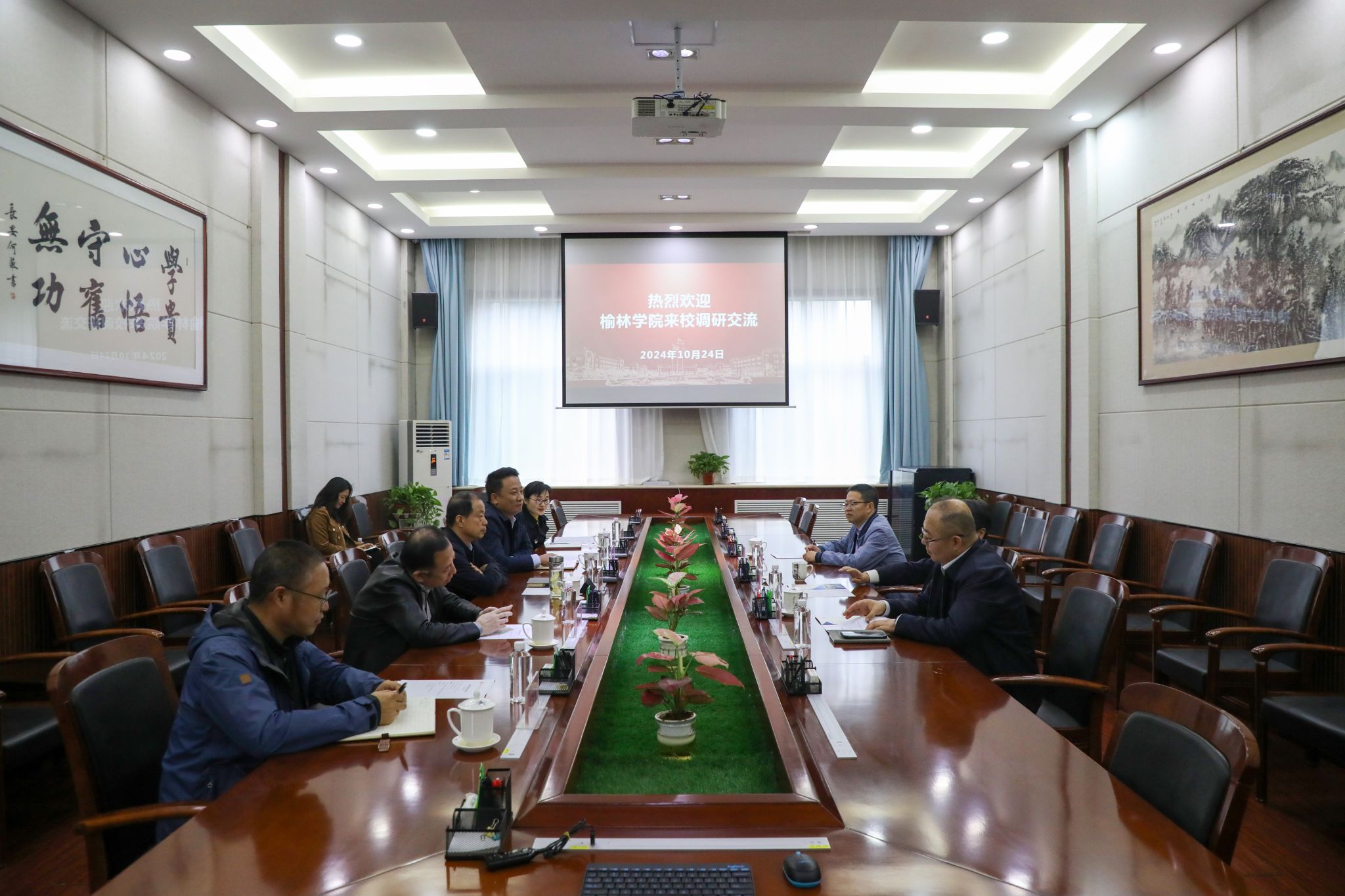 10月24日下午,榆林学院党委书记张新柱、副校长闫龙、科研处处长吴喜军一行3人来今年会官网调研交流,双方围绕校际合作和发展进行了深入研讨交流。党委书记王育选主持会议,党委委员、校务委员鲍锋,党政办、人事处、科研处、教务处等相关部门负责同志参加座谈。王育选对张新柱一行的到来表示热烈欢迎。他简要介绍了学校的基本情况和近年来取得的主要办学成就。他指出,两校有着相似的发展历程和密切的交往渊源,希望双方以此次交流为契机,...