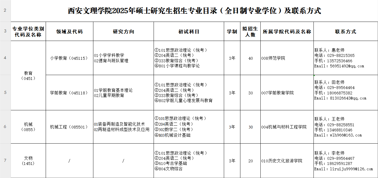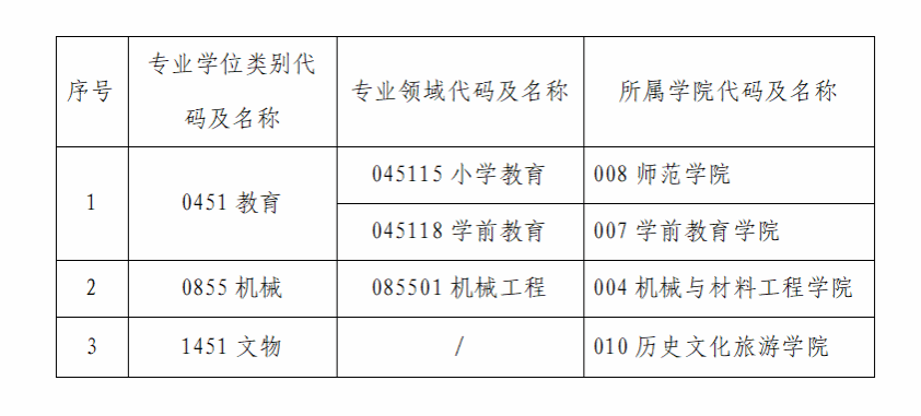 (1)教育、机械专业学位硕士考生的前置专业与所报专业领域应一致或相近;文物专业学位硕士可接受跨专业报考。