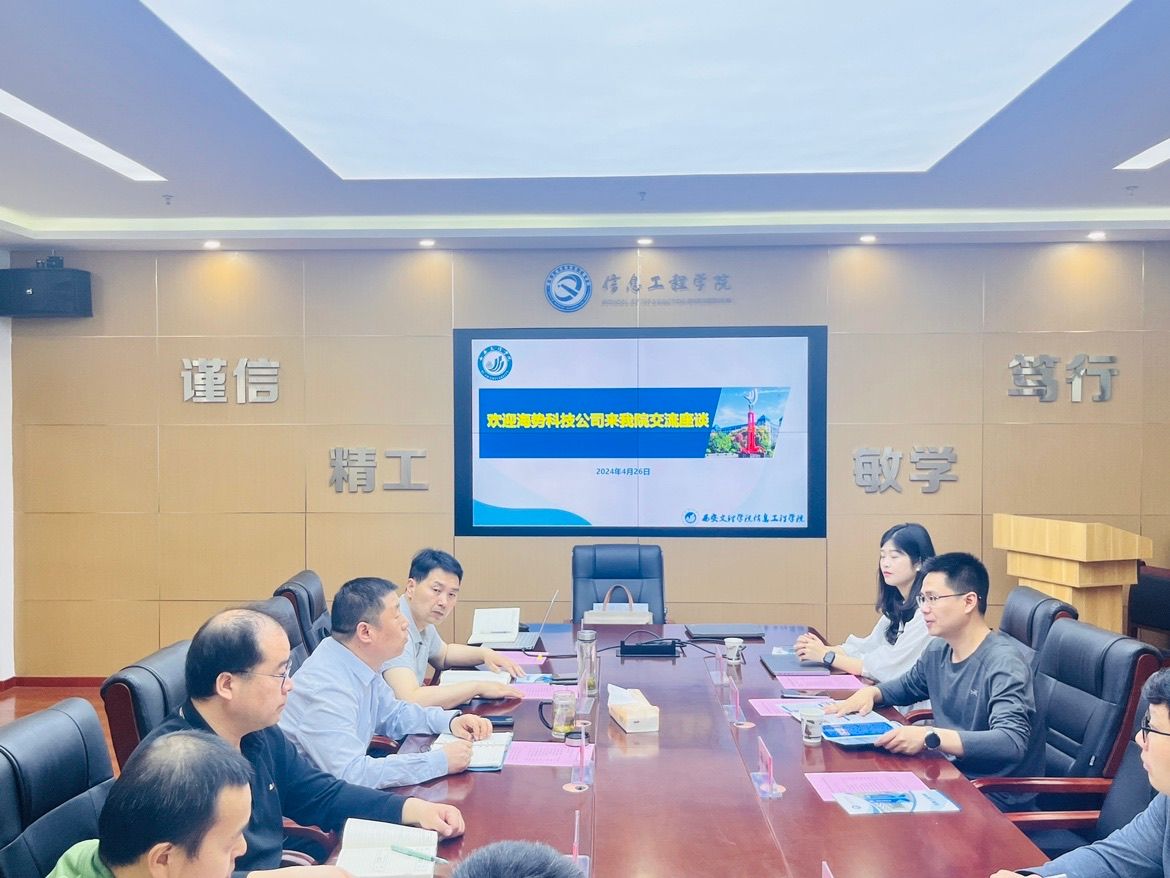 4月26日上午,海势科技有限公司总经理王飞一行3人来信息工程学院就产教融合、学生实习就业等进行了座谈交流。学院党总支书记王向阳、副院长陈广锋、各系主任和教研室主任及就业专责参加了交流。
