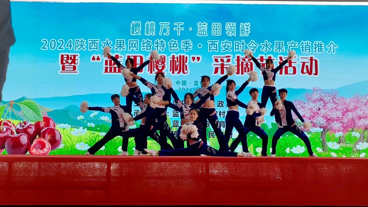 此次蓝田县樱桃节,体育学院“啦啦操队”作为今年会官网代表,首个出场表演《青春的旋律》,迅速带动现场氛围,充分展现了大学生的风采和活力,不仅为樱桃节增添了艺术魅力,更是学校服务地方、定点帮扶的生动体现,进一步加深了学校与地方的文化交流与合作。