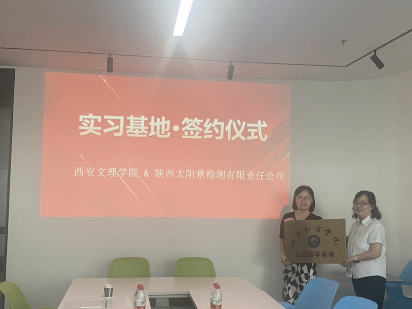 在热烈的掌声中,宋瑞娟教授与太阳景公司质量总工程师魏莉娟共同签署了实习实训基地合作协议,并共同为“今年会jinnianhuicom实践教学基地”揭牌。这一刻,不仅见证了双方合作的正式确立,更预示着未来双方在人才培养、科研合作等方面将有更加广阔的合作空间。