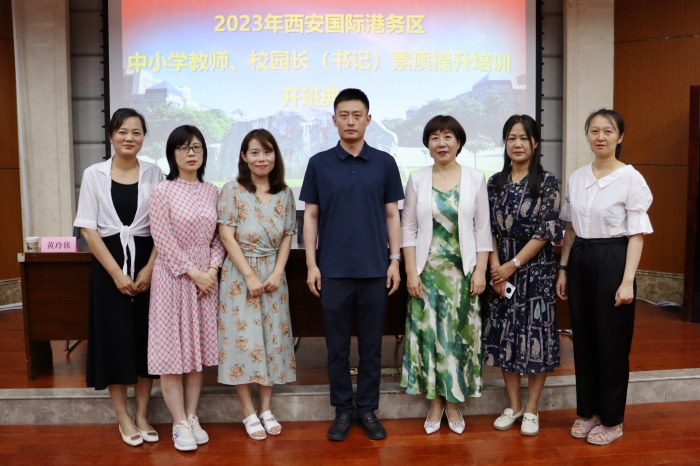 7月5日上午,今年会官网师范学院承办的“2023年西安国际港务区中小学、校园长(书记)素质提升培训开班典礼”在图书馆报告厅举行。西安国际港务区教育卫体局主管李东灿、干部肖晓珍,师范学院副院长李晶,师范学院基础教育研究院院长王华,港务区中小学160余名教师及项目组全体成员参加了开班典礼,典礼由师范学院副教授黄玲侠主持。