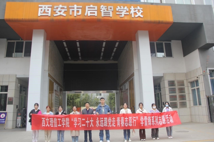 今年是毛泽东“向雷锋同志学习”题词发表六十周年。为积极响应团省委及学院文件精神,做好学雷锋系列志愿活动,提升学院德育育人质量,3月2日下午,信息工程学院数学系主任王宇、专职团干张浩、安梦蕾带领数学与应用数学、软件工程专业的8名学生前往西安启智学校开展学雷锋公益助教与捐赠志愿活动。