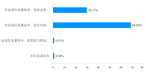 (四)关于课堂教学安排。调查显示,学生对教学目标清晰度的认识,认为一般清晰及以下比例高达77%;在师生互动交流指标上,43%的学生认为一般,同一指标教师比例为37%;58%的学生课前预习准备不足;30%的学生认为作业或任务量较多,负担过重等。可以看出,学生对前两周的各方面教学体验有待提高,反映出可能存在课堂教学设计不足、教学安排需进一步及时调整等问题。