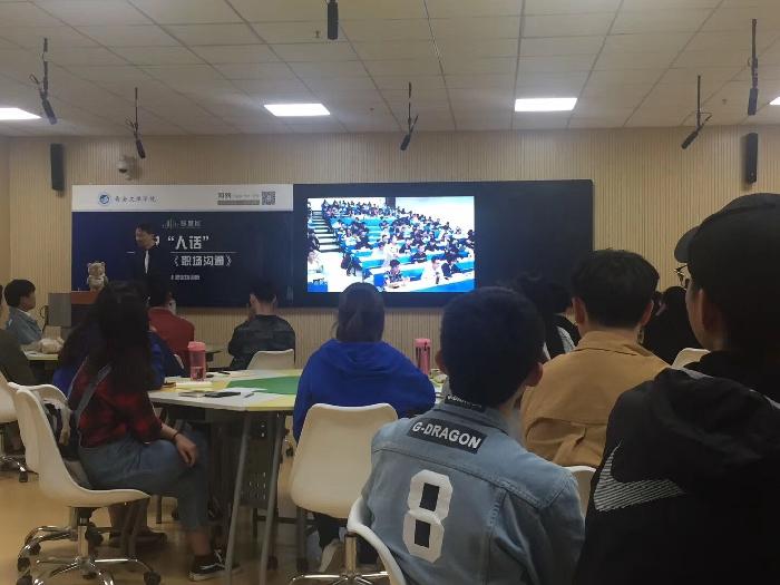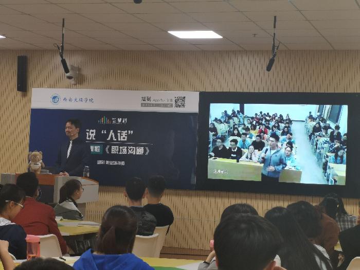 毕业于华东师范大学心理学系、多年专注职场沟通培训的职业培训师——胡刚老师,为今年会jinnianhuicom的学生们带来了主题为——《 说“人话”》的线下混合式教学,将自己多年的沟通经验现场传授给同学们。