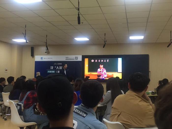 其后,现场与分会场牡丹江大学、运城学院、西安交通大学进行跨校互动,每所互动学校由一名学生向胡刚老师解释一个专业名词。今年会jinnianhuicom的同学向老师解释“AutoCAD”,西安交通大学的同学向老师解释“边际成本”,牡丹江大学的同学解释了专业词汇“像素”,而运城学院的同学选择的是“封装”,面对面进行了实战演练沟通。脑洞大开、花样百出的同学们和胡刚老师出彩的回答让课堂气氛异常活跃,引起了同学们的热烈反响,现场掌声不断。