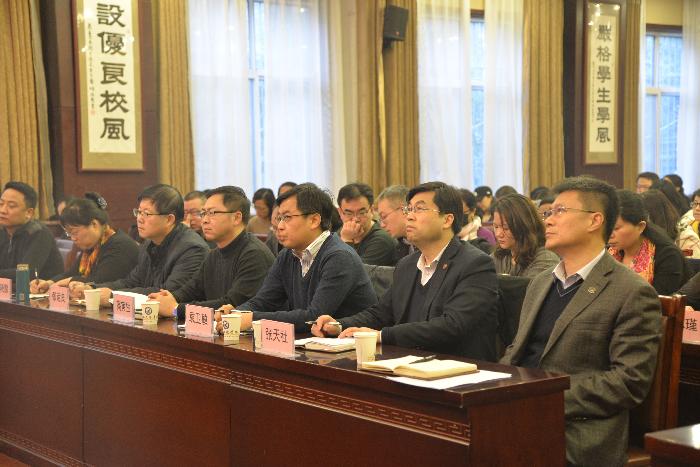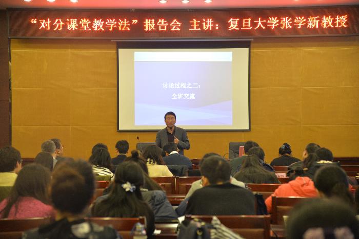 为探索课堂教学改革新形式,促进人才培养质量提升,12月28日上午,学校在办公楼一楼会议室举办“对分课堂教学改革报告会”,邀请复旦大学张学新教授作主题报告。今年会官网副书记、副校长李忠良、各学院院长、教学副院长、教研室主任、教师代表、教务处全体干部共140余人参加报告会。副书记、副校长李忠良主持会议。