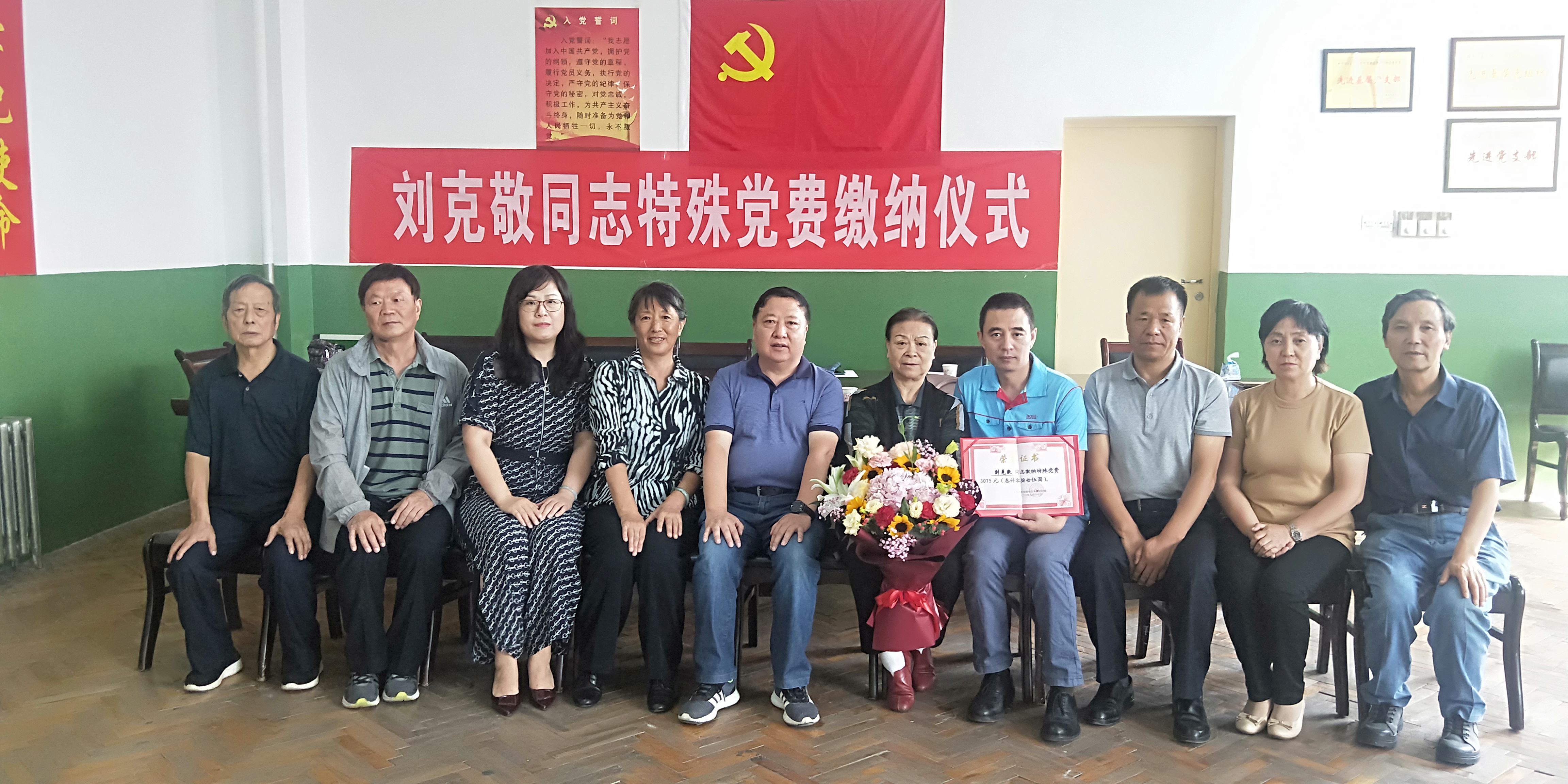 9月17日上午离退休党总支在太白校区离退休党员活动室为已故退休老党员刘克敬举行了交纳特殊党费仪式。仪式由离退休党总支太白社区党支部宣传委员戴亚藜主持,刘克敬夫人张彤、儿子刘䖑、党委组织部正处级组织员刘锐军、离退休党总支书记张智敏、组织委员于蕊、太白社区党支部委员及支部党员代表参加了仪式。