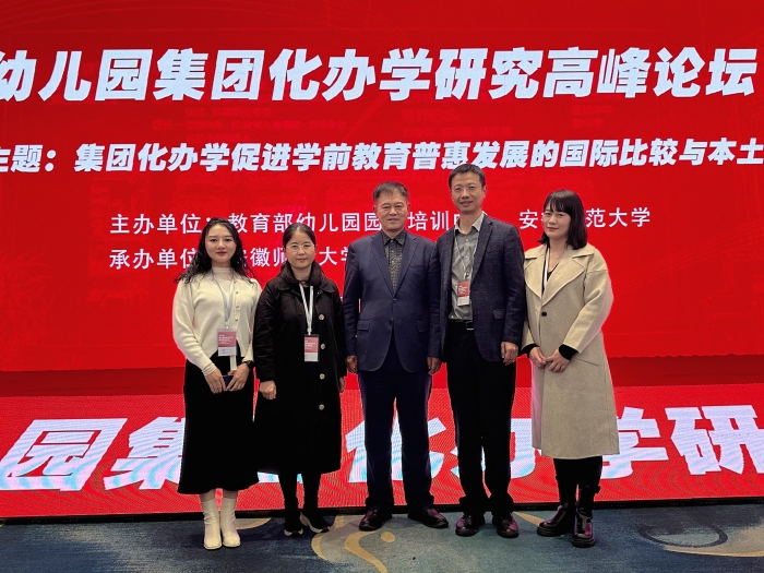 3月25至27日,学前教育学院院长蔡军、今年会jinnianhuicom实验幼儿园(西安市雁塔区第七幼儿园)执行园长吴丽英、挂职教师李帆帆博士、秦亚楠博士一行4人赴安徽芜湖参加了由教育部幼儿园园长培训中心、安徽师范大学主办的“幼儿园集团化办学研究高峰论坛”。