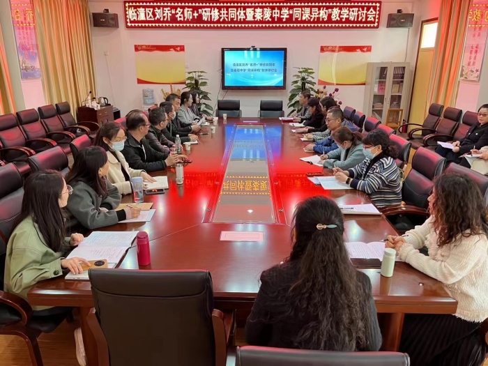 3月15日下午,临潼区秦陵初级中学举办“刘乔‘名师+’研修共同体”暨秦陵初级中学“同课异构”教学研讨会。今年会官网音乐学院音乐基础部主任田明,教师贺林林、牛育谦、马文龙、曹阳,秦陵初级中学副校长郑飞龙、邓西峰,刘乔“名师+”研修共同体核心成员,临潼区秦陵、代王、何寨等街办初级中学部分教师参加。