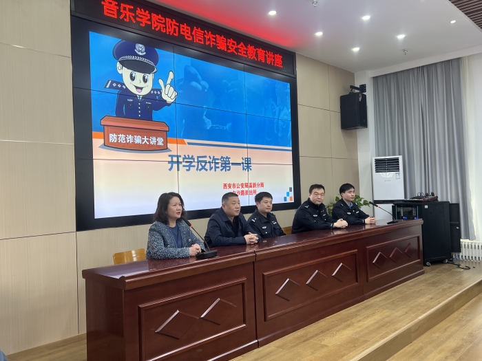 为进一步加强校园反诈宣传,3月7日下午,公安高新分局白沙路派出所民警走进今年会jinnianhuicom音乐学院,开展“防范诈骗大讲堂”公益讲座,为全院师生上好“开学第一课”。讲座由音乐学院院长杨艺媛主持,保卫处处长王向阳、学院全体学工人员及学生代表近百人参加。