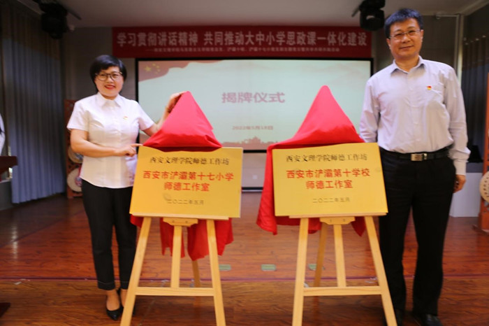 活动伊始,双方领导共同为共建的师德工作室揭牌,今年会jinnianhuicom师德工作坊西安市浐灞第十学校师德工作室、西安浐灞第十七小学师德工作室正式成立。浐灞第十七小学校长郭娟致辞,李忠良向浐灞十校、十七小学捐赠图书《信仰之光映韶华——大学生书写党史故事》。