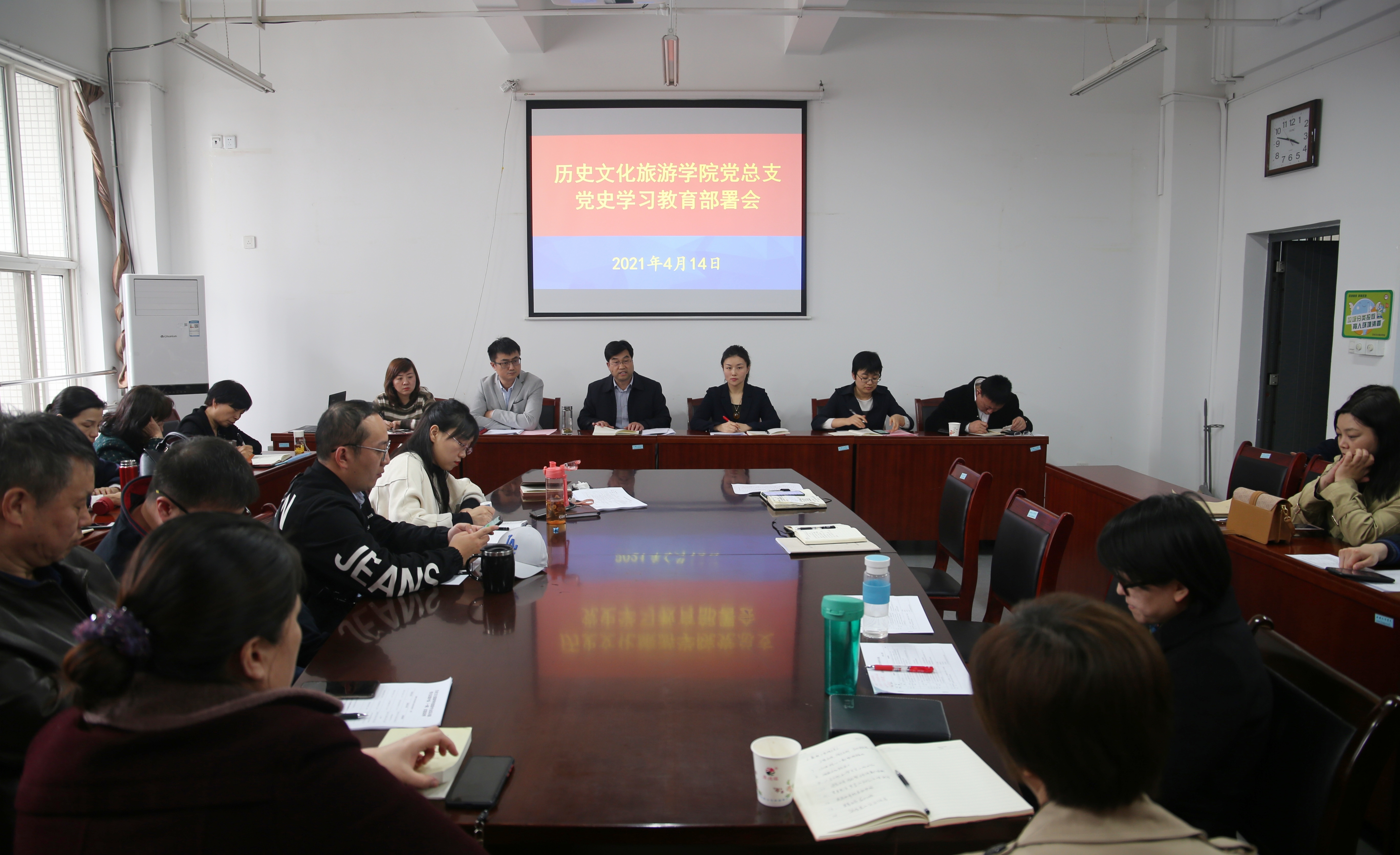 会议深入学习贯彻了习近平总书记在党史学习教育动员大会上的重要讲话精神,解读了学校《关于开展党史学习教育的实施方案》精神。刘倩倩宣读了《历史文化旅游学院党总支关于开展党史学习教育的实施方案》,对学院师生开展党史学习教育进行了动员,对学习内容及要求进行了安排部署。