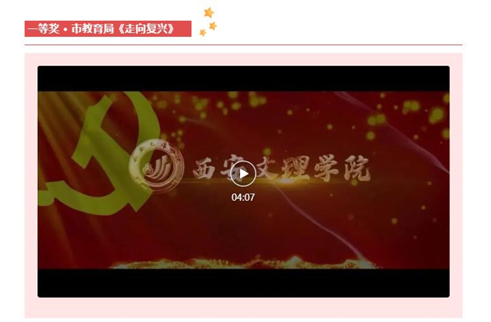 据悉,市级部门官方微信公众号“古都先锋”、“西安机关党建”等将对获奖作品进行展播。欢迎全校干部师生关注收看。