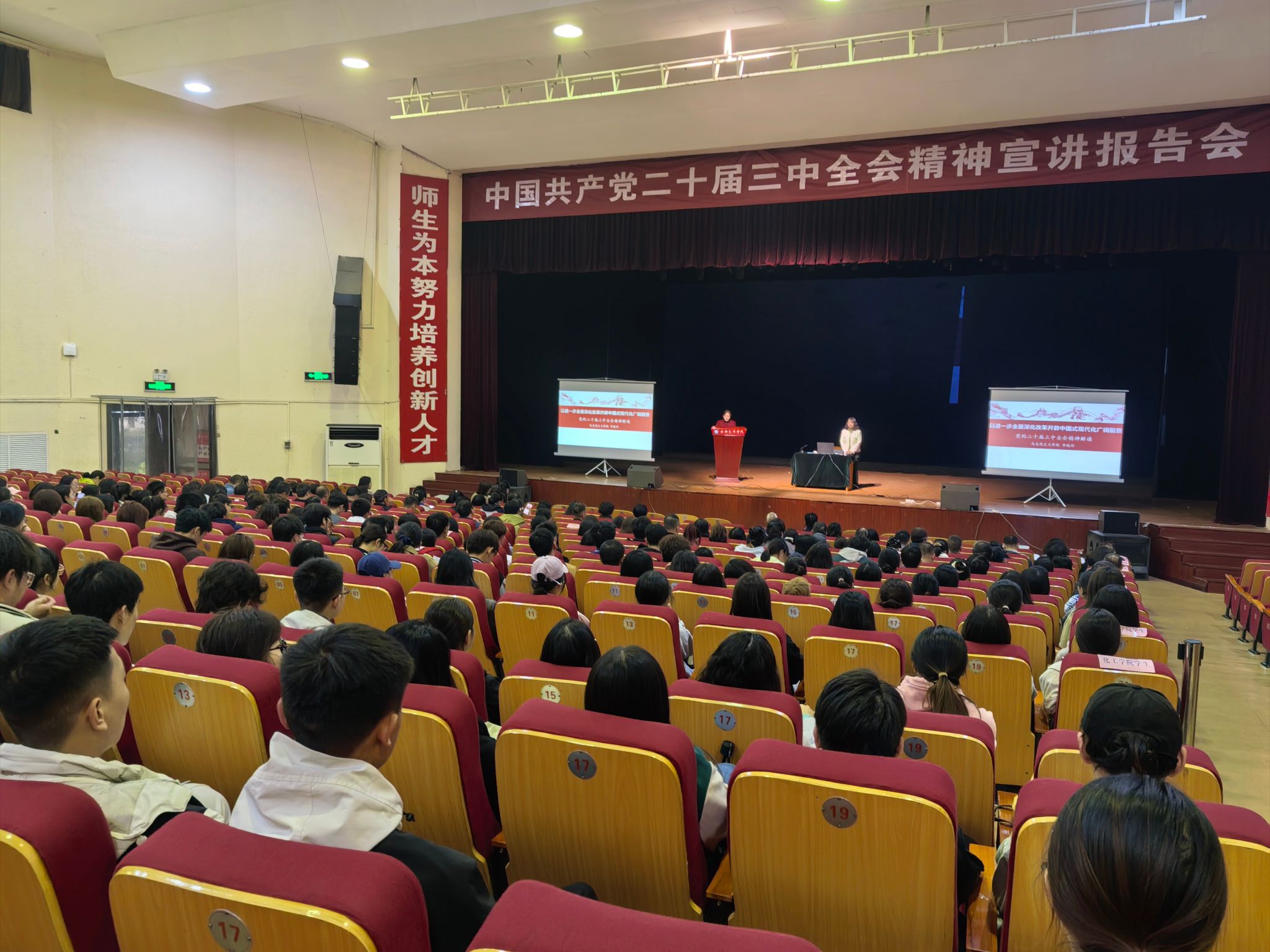 为深入学习中国共产党二十届三中全会精神,扎实开展学习贯彻习近平新时代中国特色社会主义思想主题教育,激发师生党员奋斗动力,加强党性锤炼,10月30日下午,生物与环境工程学院党总支、化学工程学院党总支共同邀请马克思主义学院副教授申晓玲在大礼堂作党的二十届三中全会精神专题宣讲会。参加会议的有两个学院领导班子、师生党员共计200余人。
