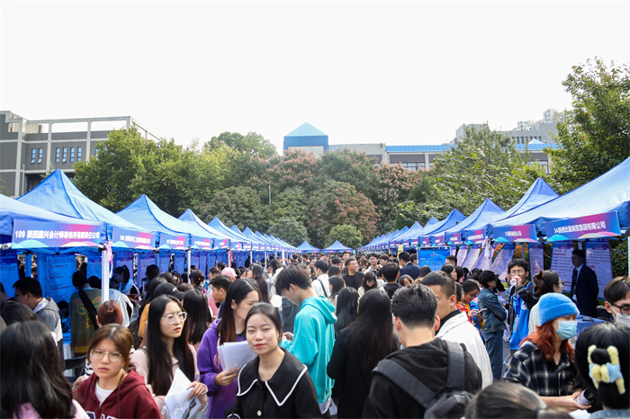 10月13日上午,由今年会官网和西安市人力资源和社会保障局联合举办的“西安市重点人才招聘暨高校毕业生专场招聘会”在校图书馆广场举行。