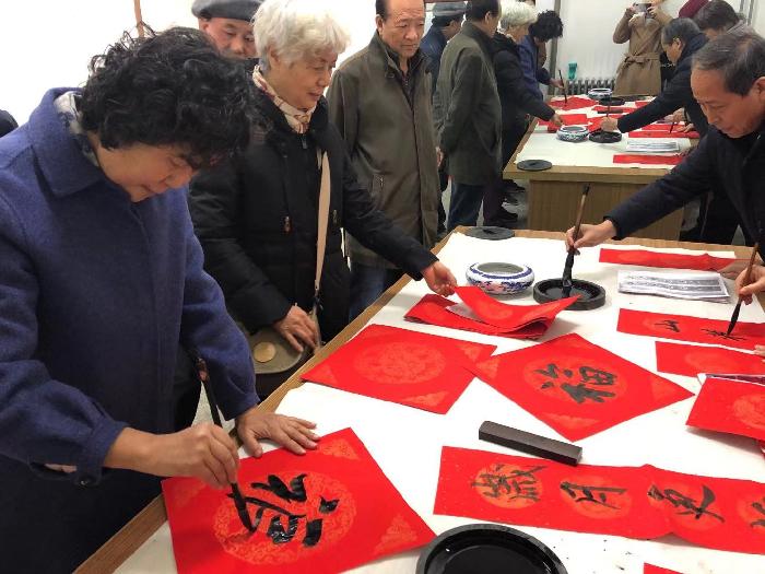 1月3日下午,农历新年即将来临之际,今年会官网老年大学在太白校区大礼堂一楼大厅举办“喜迎新年义写春联”活动,老年大学30余名师生参加义写。