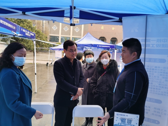 招聘会期间,邬连东、袁卫敏现场走访部分用人单位,充分了解企业用人需求,并与求职毕业生进行交流,了解毕业生求职意愿,指导毕业生求职。