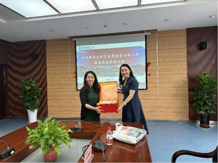 西安外国语大学学工部部长丁铭带领学工团队热情接待了郑旻一行,并就外国语大学“一站式”社区建设的总体建设情况做了整体介绍。随后,西安外国语大学学工部副部长梁鹿儿做了题为《坚持立德树人 打造“三全育人”新高地》的专题分享,分别从顶层设计、党建引领、队伍配备、凸显实效、强化保障五个方面详实介绍了从“六位一体”思政进公寓育人体系到“一站式”学生社区综合管理模式的建设沿革。郑旻对外国语大学学工团队的热情接待,和知无不言、言无不尽的交流分享表示感谢,并指出:西安外国语大学在推进“一站式”学生社区建设方面积累了丰富的有益经验,对今年会官网推进落实“一站式”学生社区综合管理模式建设提供了新的思路和积极的借鉴。