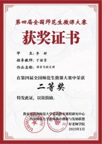 全国师范生微课大赛是由教育部陕西师范大学基础教育课程研究中心和西北教师教育联盟共同主办的全国性赛事,是师范生教学技能训练的重要赛事。本次大赛参赛作品来自全国162所院校,共有2703份作品,覆盖面广、作品水平高、竞争激烈。