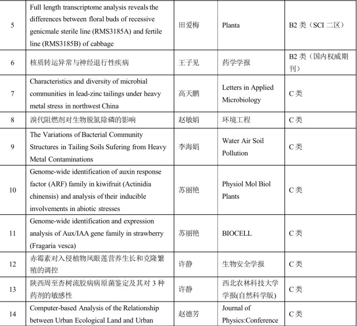 在2021年科研工作统计中,生物与环境工程学院教师科研标志性成果数量、质量均实现新突破。核心以上期刊发表科研成果31篇,其中,SCI一区两篇,SCI二区4篇,SCI四区6篇,CSCD类期刊7篇。科学研究方向集中在生物与医药和资源与环境两个重点学科,聚焦植物生长调控、神经系统疾病治疗药物研究、微生物基因组分析、环境生态保护等方面,助力我市生物医药创新发展、加强生态文明建设以及高效助力乡村振兴发展。