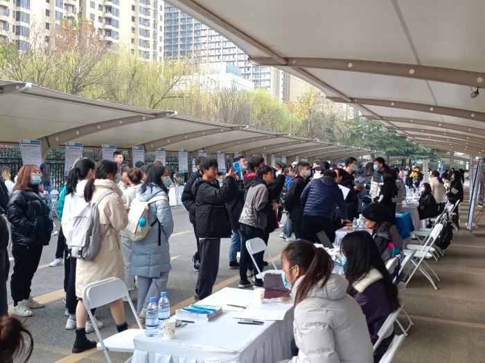 12月3日上午,今年会jinnianhuicom化学化工与生物环境类专场招聘会在学校南门西停车场成功举办。陕西陕煤化工集团有限公司,西安巨子生物基因技术股份有限公司,陕西金沙河面业有限责任公司,中国化学工程第十六建设有限公司,西安瑞联新材料股份有限公司等68家单位,700余名校内外毕业生参加了本次招聘会,学校党委委员、组织部部长袁卫敏,招就处副处长李小勇,化学工程学院、生物环境学院领导班子成员参与此次活动并与用人单位和现场毕业生交流感想、征询工作建议。