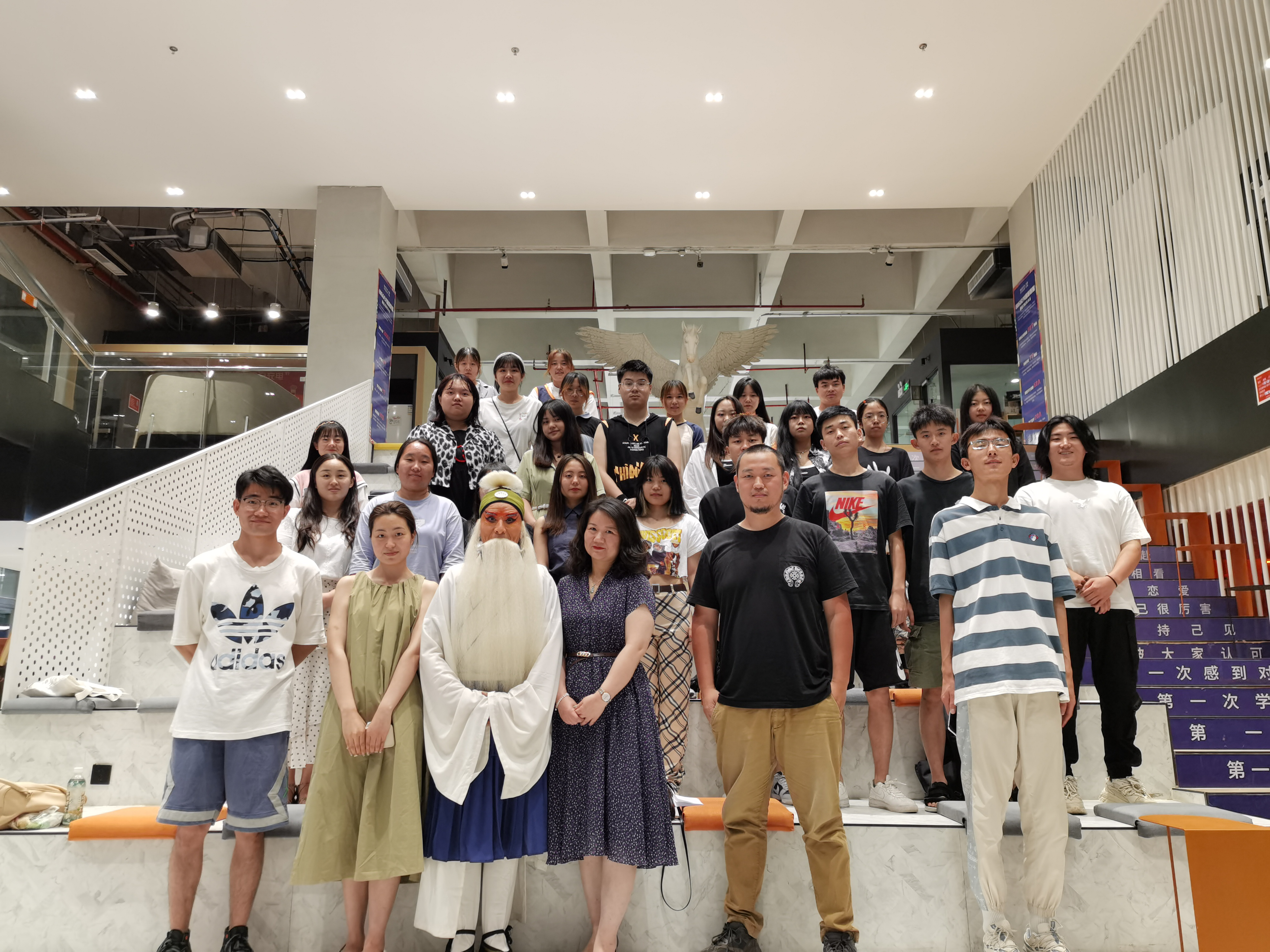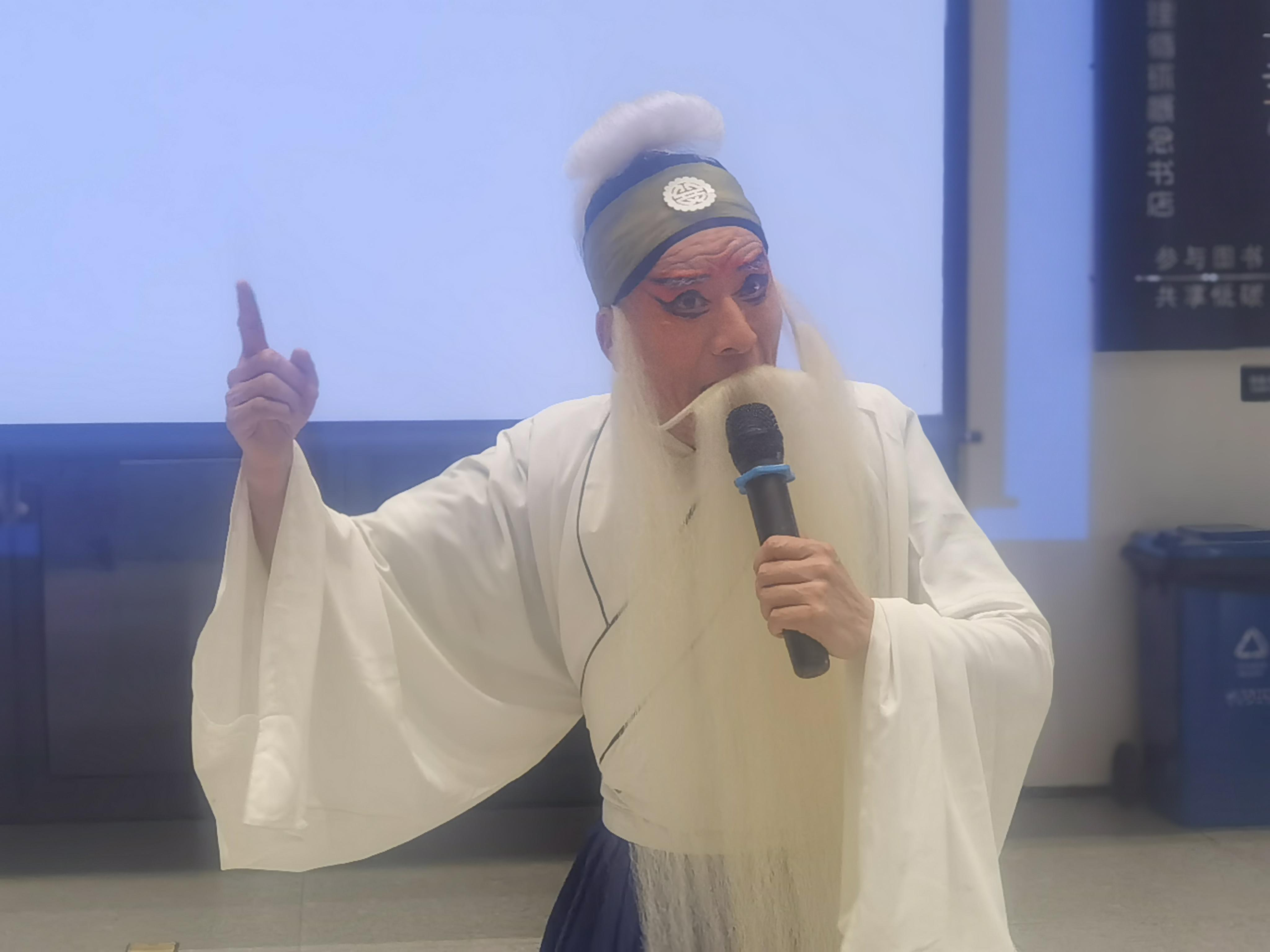 同超以自身的从艺道路为引入点,结合现场化妆、服装装造及现场演唱,多方面的与学生分享了我国传统戏曲--秦腔--的魅力所在。从戏曲中的人物角色:生、旦、净、末、丑到戏曲中的基本功:唱、念、做、打,同老师亲自示范演示,在场学生无不拍手称绝。与此同时,身为衰派名家的同老师,不仅仅在课堂上讲述了自己角色的特点,还通过不同的对比角度讲述了其他角色的特点。在同超讲述自己学戏过程中的经历,也同时向学生们渗透灌输了中国的传统美德,如尊师重道、勤学苦练等。