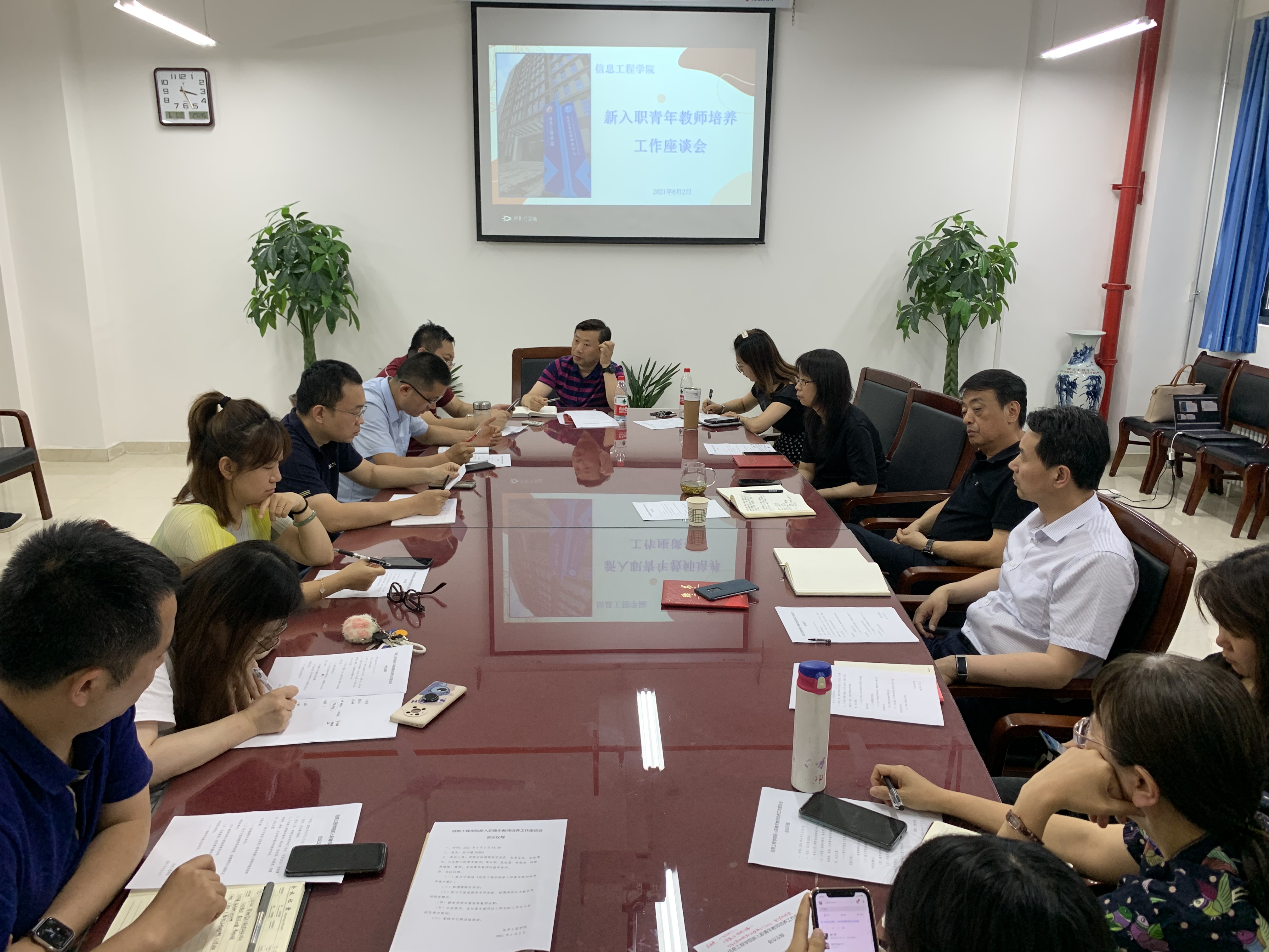 6月2日,信息工程学院召开新入职青年教师培养工作座谈会,学院领导班子全体成员、各系主任、新入职博士以及学院具有博士学位的教师代表参加了此次会议。