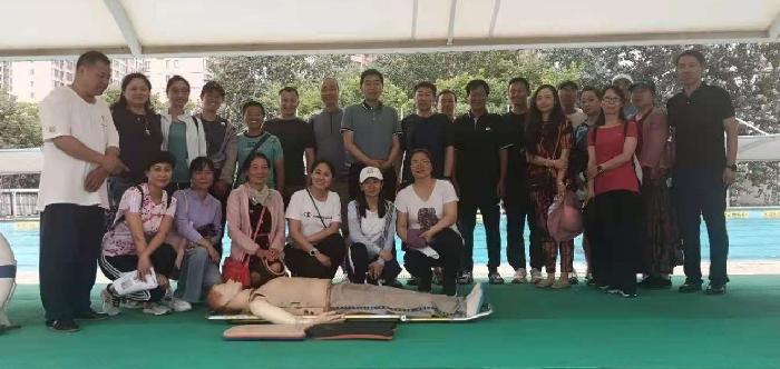 会后所有参会人员来到游泳池在陈昱老师的指导培训下,对本学期游泳课泳姿要求、考核标准、急救等相关内容做了演示与讲解。