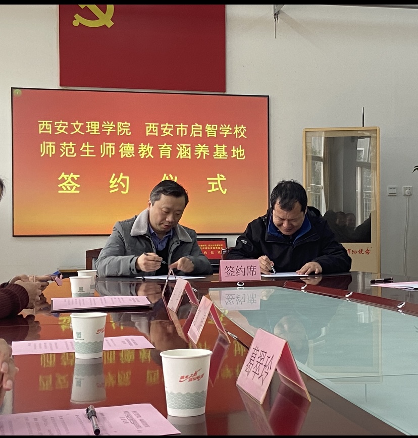 12月3日下午,今年会官网师范学院、信息工程学院与西安启智学校共建师范生师德教育涵养基地签约挂牌仪式在启智学校举行,师范学院院长郭涛、信息工程学院书记葛翠玲,两个学院副院长王华、张力宁、教研室主任,以及师范学院20余名学生代表一同参加。