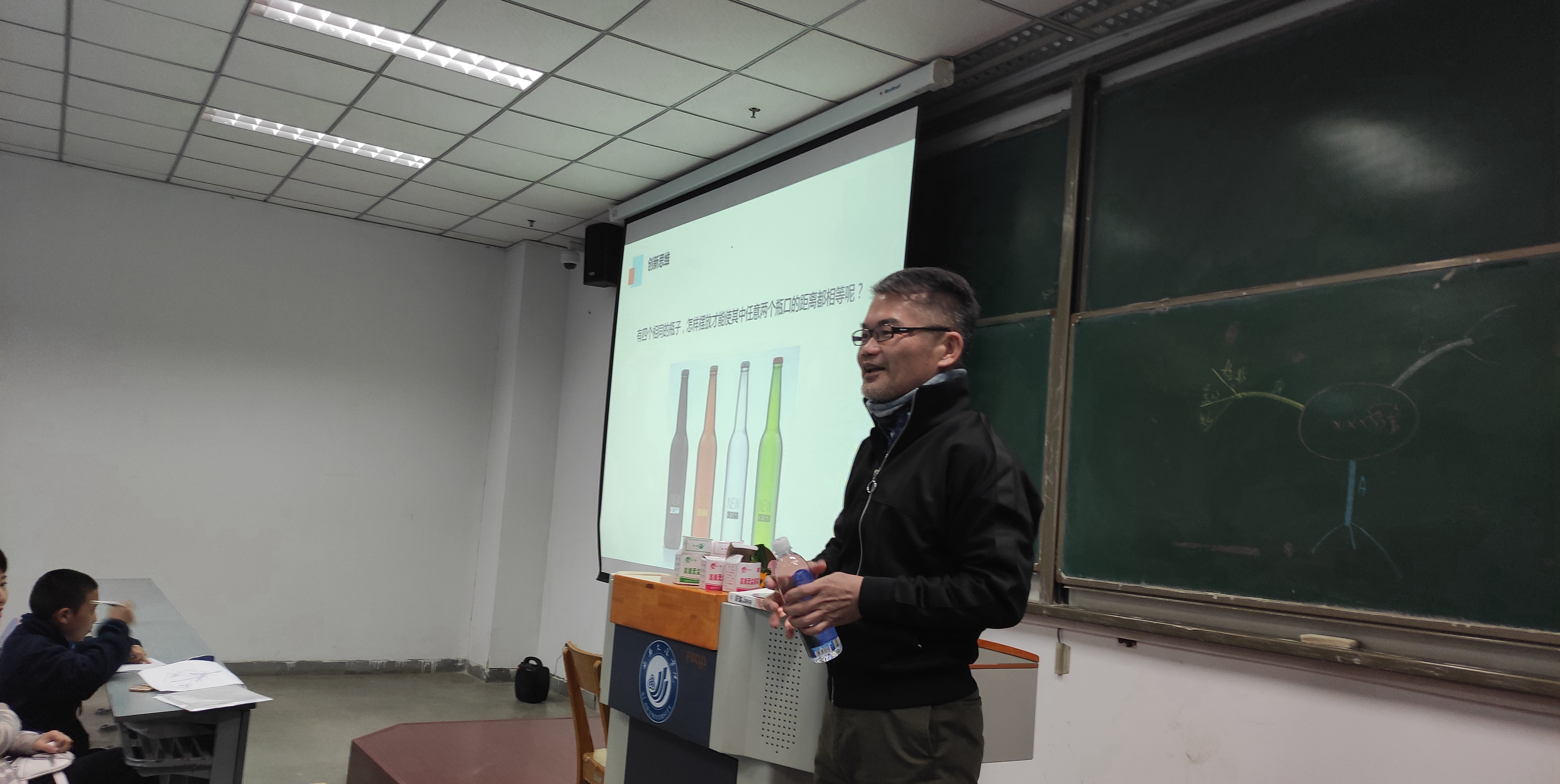 郑玲玲首先向张耀乾的到来表示欢迎。张耀乾用轻松幽默的语言营造了愉悦的氛围,从不同视角畅谈对于文创的认识,并介绍了台湾文创与大陆文创的源渊。作为祖国不可分割的一部分,台北故宫文创与北京故宫文创有着相同的秉性和传承。张耀乾通过视频案例分享以及自身参与的实际案例,向学生展示了怎样在生活文化中找到地方特色,从中华文化发展创意产业,从文化资产衍生创意产业,为同学们指明了文创发展空间的研究方向。最后,他向同学们提出“用心想、多尝试、多参与”的建议,对同学们寄予了殷切期盼。