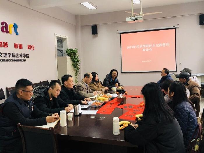 2019年12月31日,艺术学院党总支举办了民主党派教师座谈会。民进成员杨艺媛、刘峻、李海明,民盟成员赵春茹,农工党成员武晓丽,九三成员杨帆等老师与艺术学院班子、党总支成员一起参会。会议由王一副书记主持。