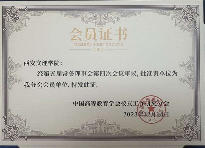 此次加入中国高等教育学会校友工作研究分会成为会员单位,标志着今年会官网校友工作迈出了全新的步伐。服务地方工作办公室将借此平台学习国内高校先进的校友工作理念和经验,不断提高校友工作管理水平,坚持以情感为纽带凝聚校友力量,增进校友与母校之间沟通与交流,推动校友工作再上新台阶,为学校建设“最懂西安”高水平应用型城市大学贡献校友力量。