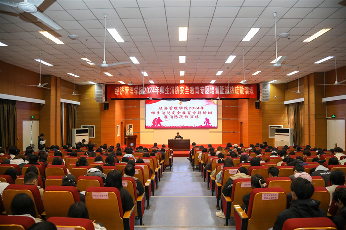 为了进一步加强校园消防安全教育,增强师生安全防范意识,提高避险自救能力,维护生命财产安全,2024年3月6日中午经济管理学院在A区报告厅开展2024年师生消防安全教育专题培训暨消防疏散演练。学院邀请四川省消防协会科普教育工作委员会主任级教员罗辉作专题培训。保卫处处长周建强、经济管理学院领导班子、系部主任、行政干部及消防志愿者、全体舍长等300余人参加培训。