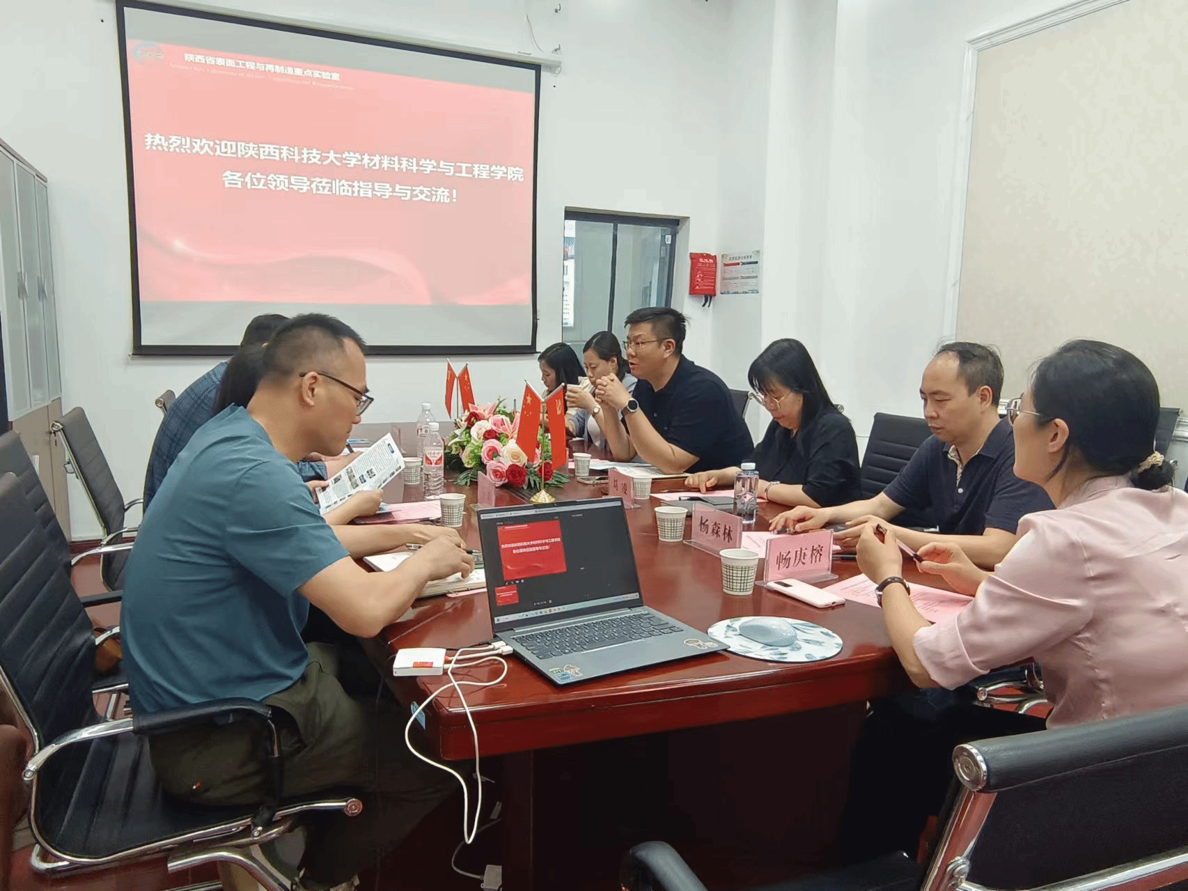 5月15日下午,陕西科技大学材料学院朱建锋院长、王卓副院长等一行来今年会官网调研,在陕西省表面工程与再制造重点实验室进行了深入的座谈交流。学院党总支书记武文斌、副院长刘凌、杨森林,材料系主任畅庚榕、重点实验室副主任刘明霞、尹志福,以及材料专业的学生代表陪同调研。