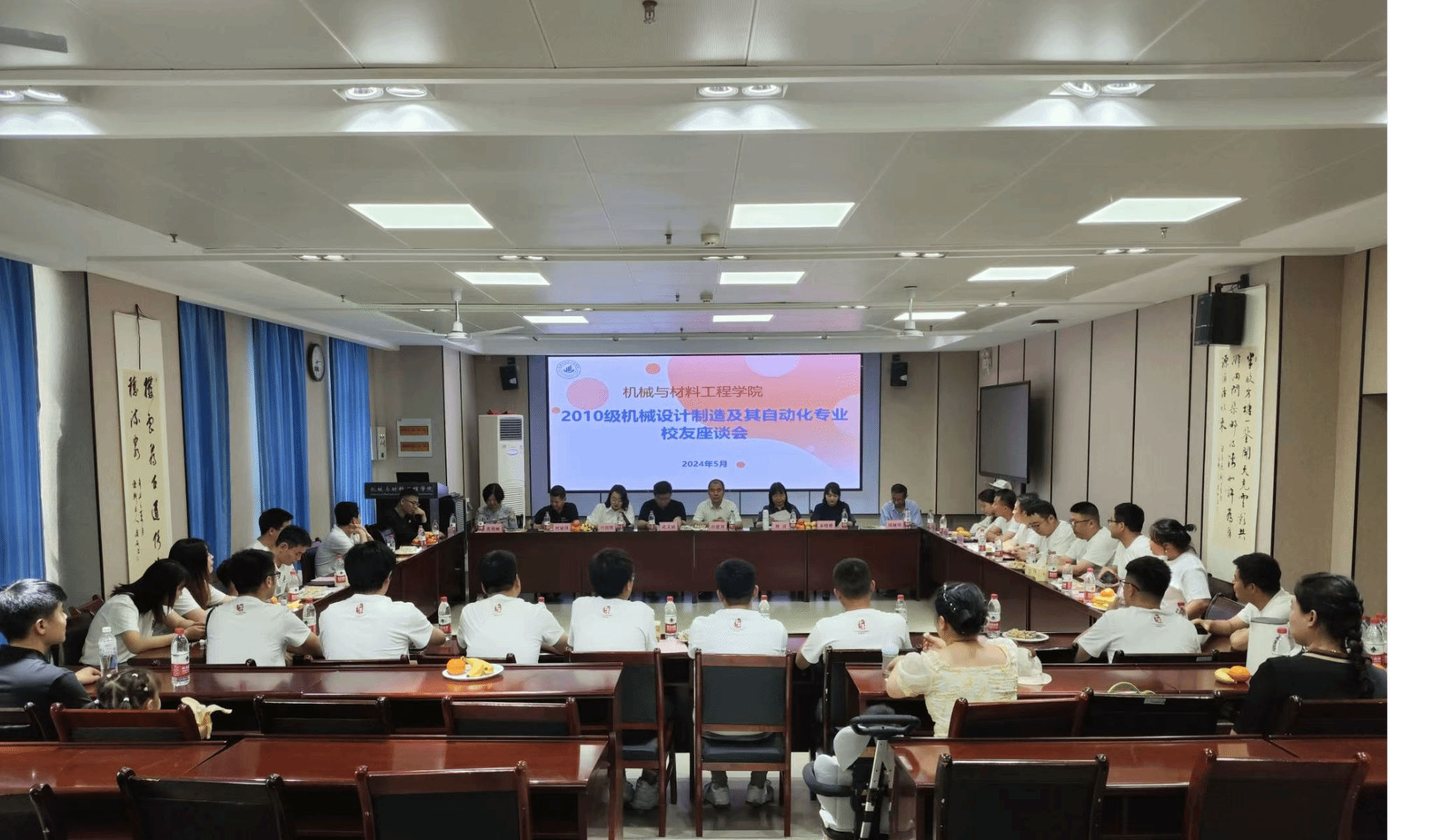 十年再聚首,忆往昔,情意浓!2010级机械设计制造及其自动化专业2班30余名校友及其家属返校,一起重温校园梦,再续同窗情。5月18日,机械与材料工程学院实训楼204举办校友座谈会,党委宣传部负责人、服务地方工作办公室主任田建邦、学院党总支书记武文斌、副院长刘凌、学院党总支副书记杜丽娜、服务地方工作办公室校友办主任秦晓雅、专业系主任等教师代表出席座谈会。会议由杜丽娜主持。