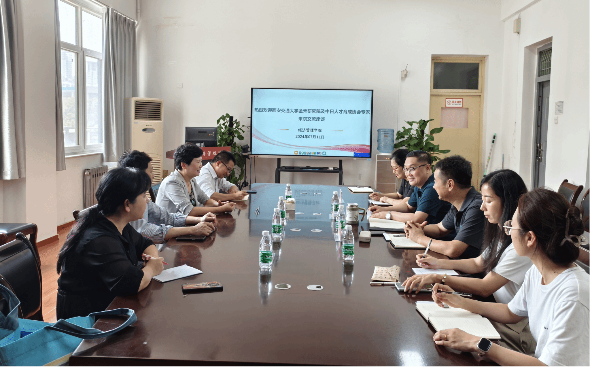 7月11日下午,西安交通大学老龄与健康研究中心兼金禾经济研究中心副主任曾卫红、中心对外培训负责人及中日人才育成协会理事杉山拓、执行理事张新元一行4人来经济管理学院考察交流。经济管理学院院长闫荣国、副院长董冠华及养老服务管理专业全体教师参加交流。