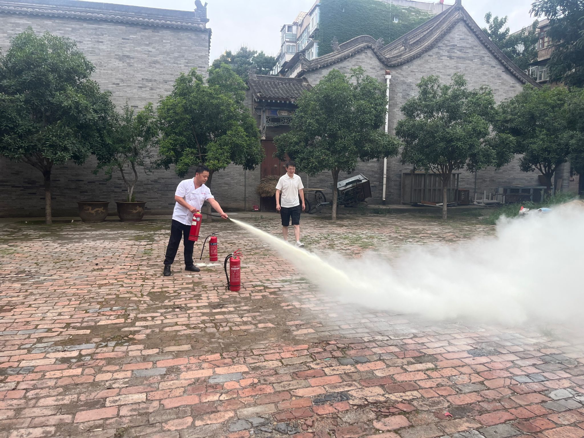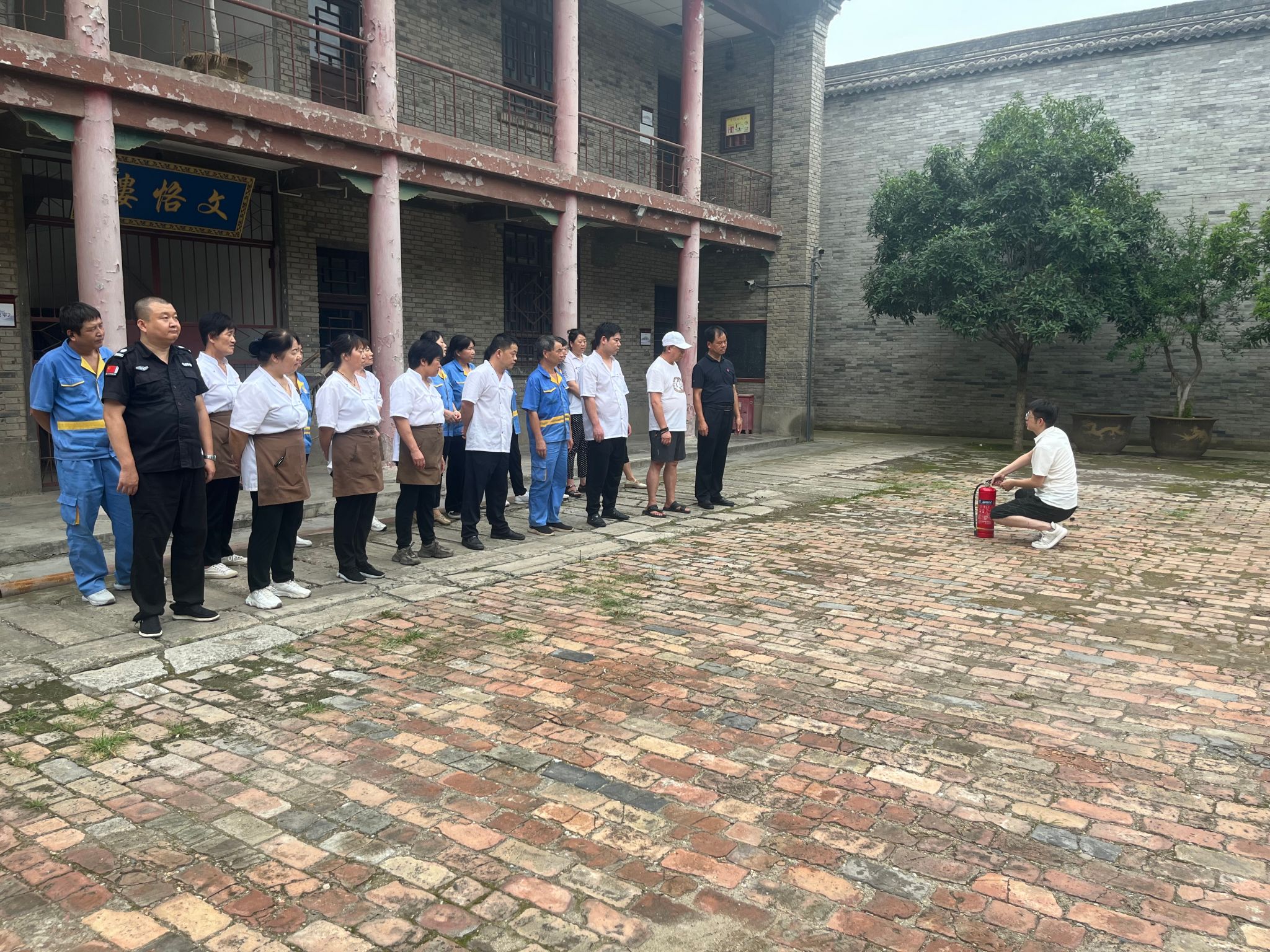 为了切实提升校园消防安全环境,杜绝重大火灾安全事故的发生,最大限度地减少事故损失。使教职员工掌握消防安全知识,培养消防意识,落实火灾事故防范措施。7月23日,后勤管理与保障处(基建处)联合关中书院邀请学校保卫处高志国老师为书院校区全体教职员工现场进行消防安全的讲解和演练,高老师结合消防安全制度以及各类火灾案例,对如何树立公共消防意识、预防、杜绝可能引起消防事故的内外隐患、个人面对突发火灾事故应如何进行救灾及逃生等方面进行了全面的讲解,并对灭火器、水带等消防工具的使用要领进行了详细的说明,传授了使用灭火器四字口诀:“提、拔、卧、压”,并指导教职员工进行现场灭火。