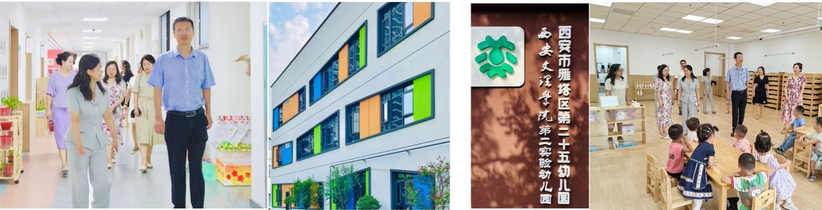 雁塔二十五幼是学前教育学院受雁塔教育局委托管理的第二所幼儿园,于2024年9月1日正式开园,该园坐落于南三环与子午大道交汇处的奥园和悦府小区东门北侧,占地面积5012㎡,建筑面积3300㎡,设有9个班级,可容纳270名幼儿就读,今年已开设4个教学班。学院领导实地查看,了解园所的硬件条件现状、设施设备投放、环境布局等情况,对开学准备工作也给予了充分的肯定,并鼓励幼儿园继续秉承文理学院的优良传统,为幼儿提供优质的教育,打造出新的优质品牌。