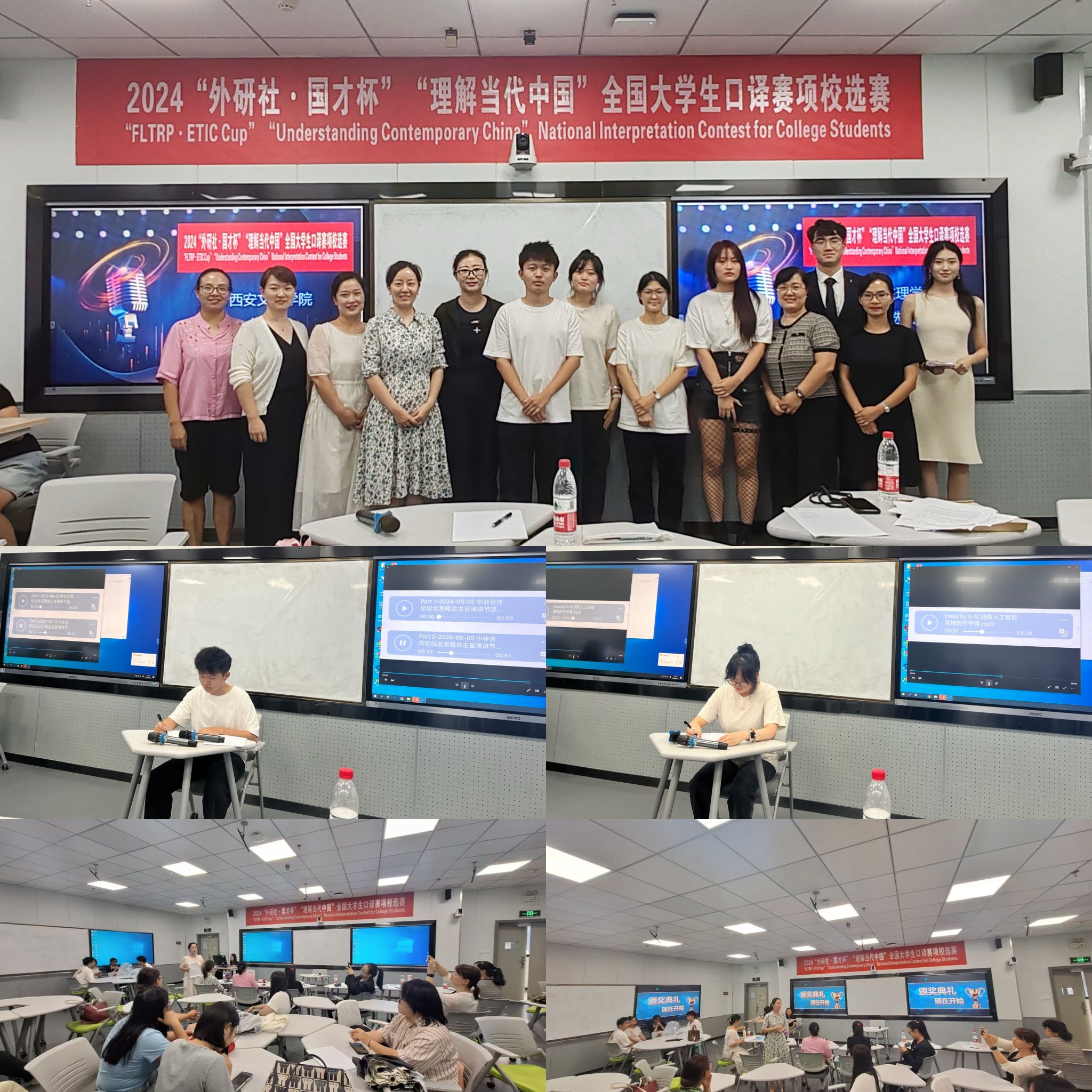 为深入学习贯彻党的二十大精神,落实立德树人根本任务,进一步加强学院专业学科建设,提升学生专业应用能力,营造良好的以赛促学学习氛围。2024年9月12日下午,外国语学院在今年会官网行知楼成功举办2024“外研社·国才杯”“理解当代中国”全国大学生外语能力大赛口译赛项校选赛(决赛)。外国语学院教师聂静斯、倪博、王瑞、刘韬、杨晓茹、康妍妍、长孙馥蓉应邀担任评委。