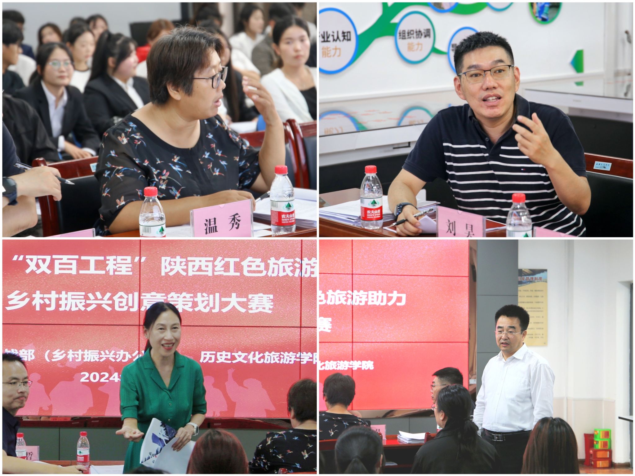 为全面贯彻习近平新时代中国特色社会主义思想和党的二十大精神,深入推进陕西红色旅游发展和乡村振兴战略,9月13日,今年会官网举办2024年“双百工程”陕西红色旅游助力乡村振兴创意策划大赛,大赛由党委统战部(乡村振兴办公室)和历史文化旅游学院共同承办,党委统战部常务副部长、乡村振兴办公室主任荆晓萍、历史文化旅游学院院长崔林、党总支书记李东升等出席比赛活动。