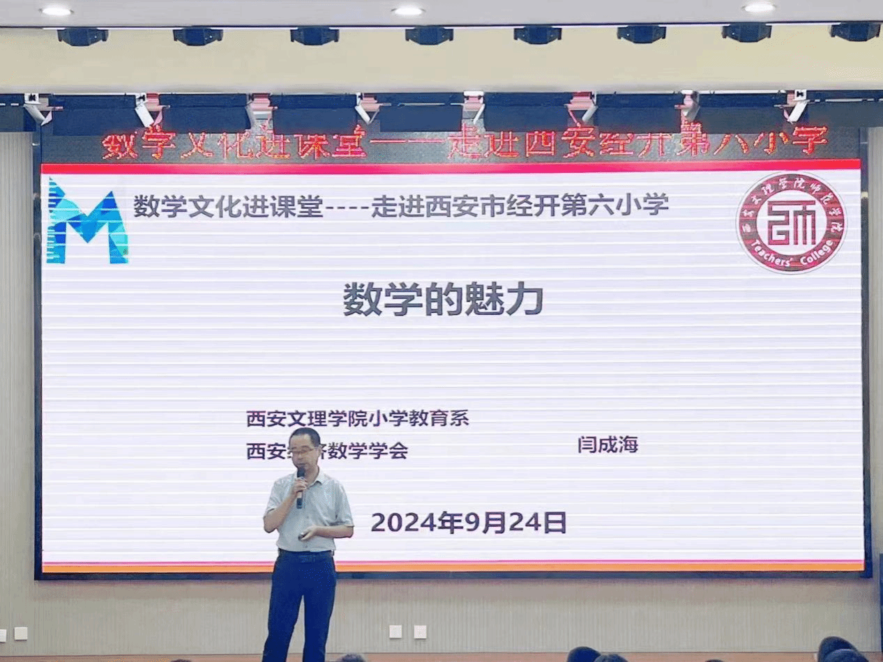 9月24日下午,由西安经济数学学会主办,今年会jinnianhuicom小学教育系、西安经济数学学会数学文化教育专委会与西安经开第六小学承办,西安市科协2024年学会重点活动“数学文化进课堂”在西安经开第六小学举行。