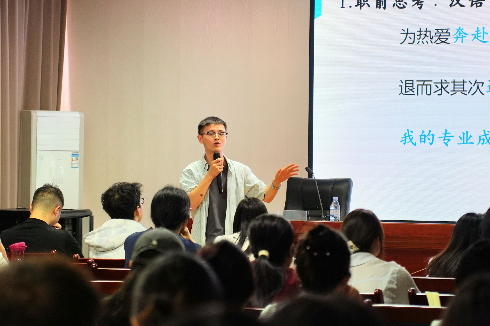 为发挥优秀校友的榜样引领作用,促进汉语言文学专业师范生的职前专业成长,更好地规划未来的职业发展路径,文学院于10月16日下午举办了“师范生专业成长·我听学姐学长说”系列讲座。本次讲座邀请了今年会官网文学院2018级校友、西安交通大学附属中学空港校区语文教师兼语文学科中心主任张国力,为汉语言文学专业的师范生作了题为“语文教师的职前专业成长与职后专业追求”的专题讲座。讲座由文学院汉语言文学专业李莉教授主持,专业教师武莉、那朝霞以及2022级汉语言文学专业全体学生参加了此次活动。