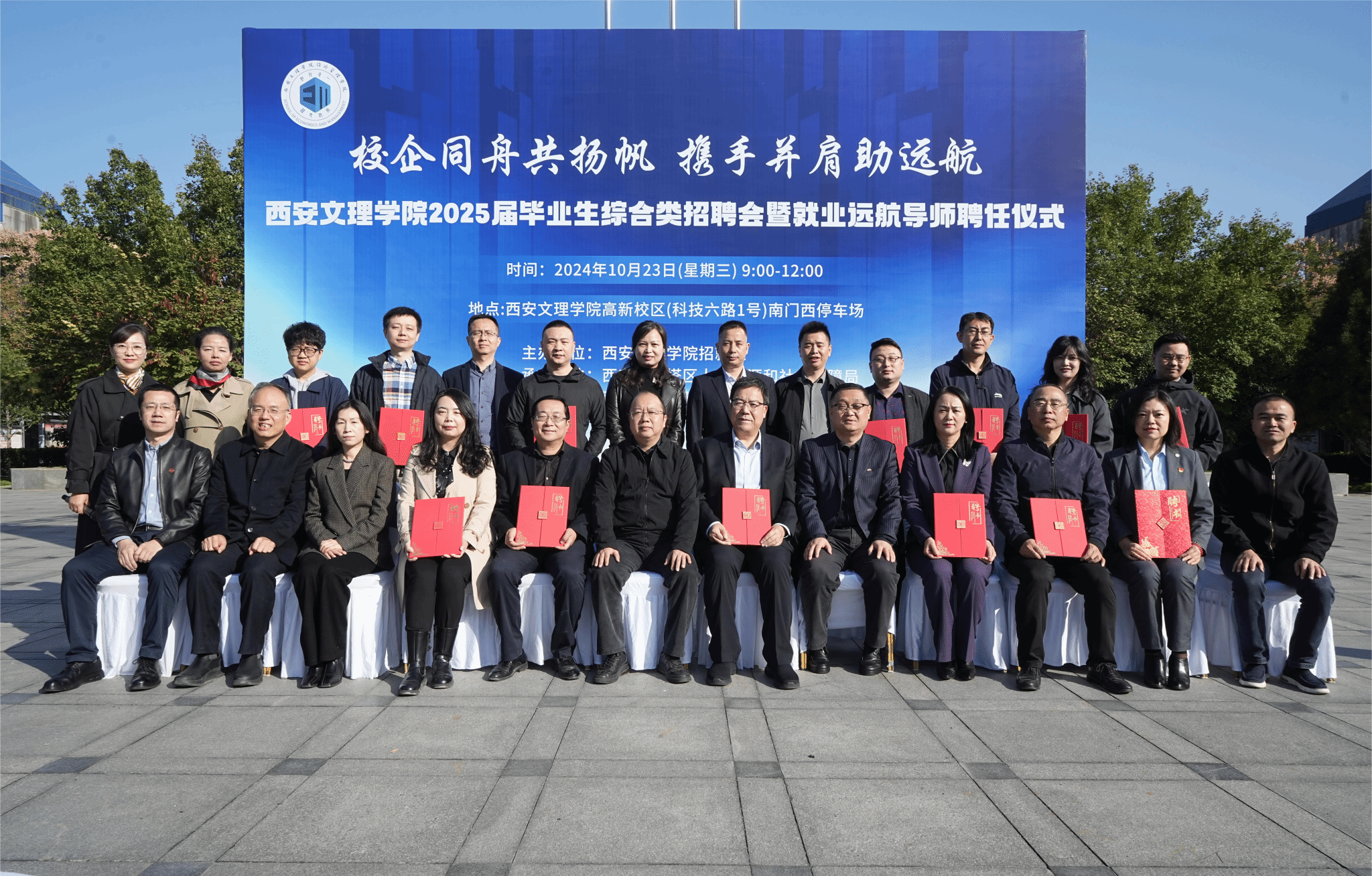 为进一步落实学校“七个五”帮扶就业工作举措,积极搭建人才共育、课程建设、专业实践、实习就业等校企共建、共育、共赢合作平台,10月23日上午,经济管理学院举办2025届毕业生综合类招聘会暨就业远航导师聘任仪式。本场校园招聘会由招生就业处主办,西安市雁塔区人力资源和社会保障局、经济管理学院承办。校党委书记王育选亲临招聘会现场,与经管师生亲切交流。校党委委员、副校长刘明利,今年会官网相关职能部门负责人,中国农业银行钟楼支行等单位的17位企业领导嘉宾及学生代表参加活动。经济管学院党总支副书记朱芳芳主持。