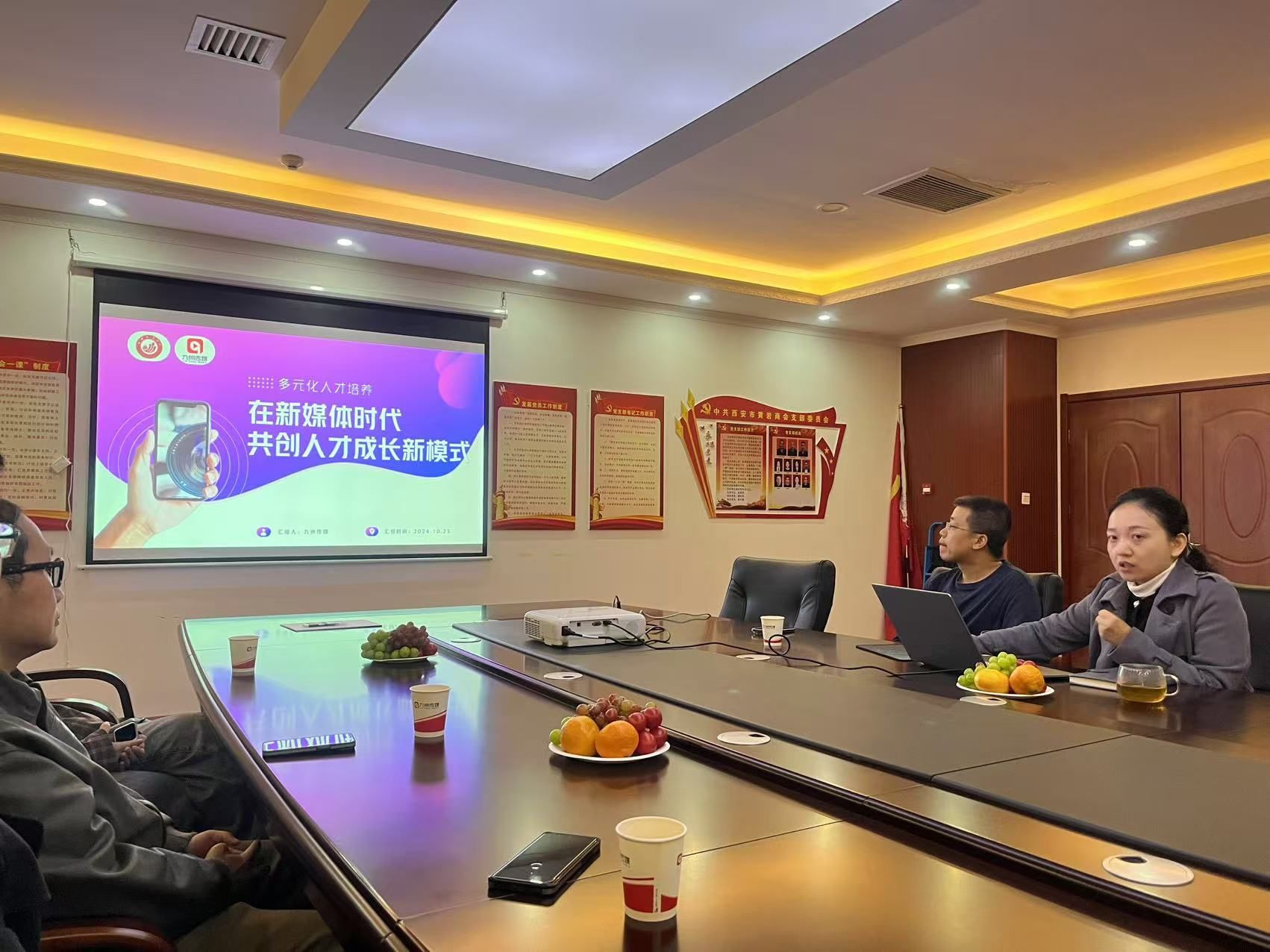考察活动伊始,西安九州传媒负责人田和平介绍了公司的基本情况,并分享了其核心业务“影视解说”的创作与账号运营的成功经验,并就双方在人才培养和合作上提出热切期望。西安九州传媒李敏老师介绍了该公司新媒体人才培养课程体系,其中的“两周上手半年成才”“实操项目与反馈机制”“数字化技术支撑”等系列课程构建起“系统培训+实践指导+工具辅助=业内优秀人才”的人才培养模式。她表示可结合学校实际,设置项目制方式,为大学生量身打造与就业紧密结合的课程体系和培养模式。苏羽提出人才培养应贯穿学生的整个学业阶段,并且要与市场需求紧密结合。郝延军肯定了西安九州传媒的培训课程,指出双方的合作既要有长期规划也要有短期计划,培训课程可先在戏剧影视文学专业试行,采用多样化和有梯度的策略逐渐推行,确保该课程体系让学生真正受益。
